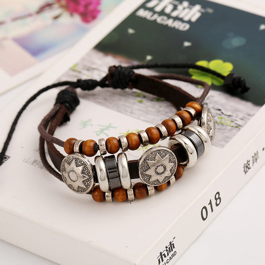 HUFE European and American popular accessories handmade cowhide beaded bracelets, genuine leather bracelets and bracelets