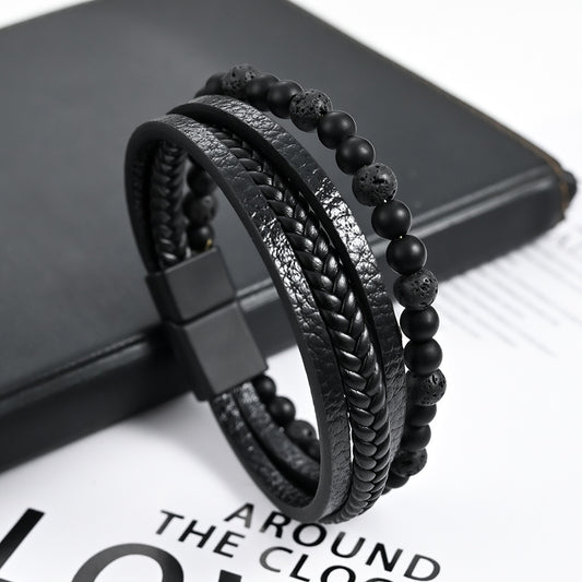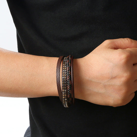 Amazon's new personalized multi-layer leather bracelet with titanium steel accessories and alloy magnetic buckle for simple commuting bracelet