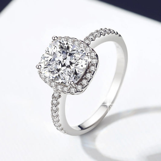 HUFE European and American Fashion 18kGold plated with s925 Sterling Silver Inlaid Diamond Four Claw Princess Square Diamond Ring Personalized Light Luxury Network Red Women's Ring (high-end packaging)